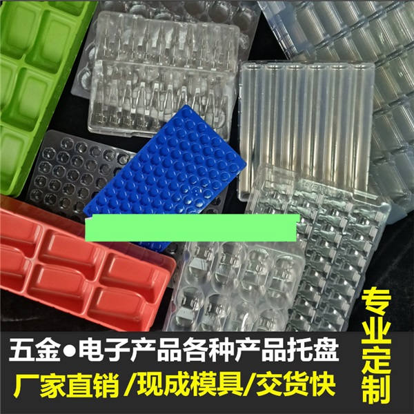 吸塑托盤是指采用吸塑成型工藝加工形成的一類塑料托盤,主要用于工業品,電子產品,食品包裝,厚度從0.2mm至2mm不等。按功能和材料不同分為:周轉托盤,抗靜電托盤,PS吸塑托盤等。