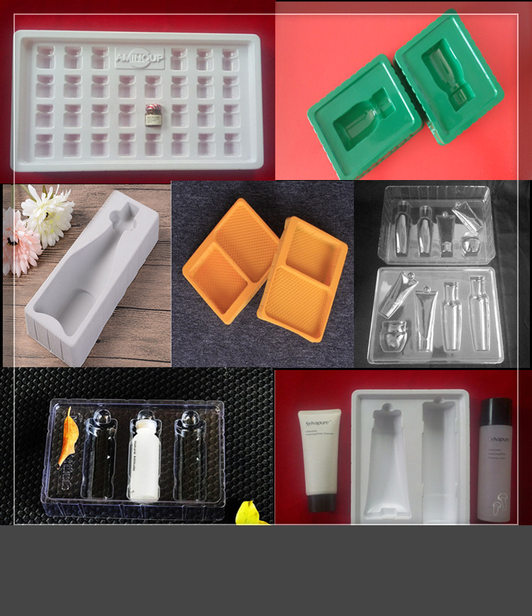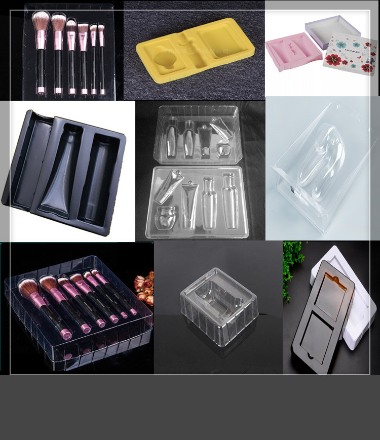 托盤:也叫塑料內(nèi)托,采用吸塑工藝將塑料硬片制成特定凹槽的塑料,將產(chǎn)品置于凹槽內(nèi),起到保護(hù)和美化產(chǎn)品的作用。
